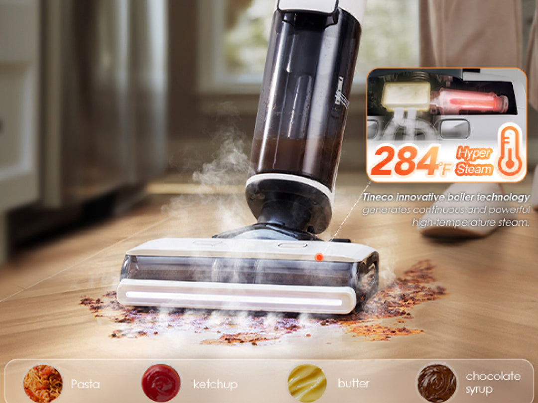 The tineco wet dry vaccum cleaner achieves deep cleaning with 284°F steam.