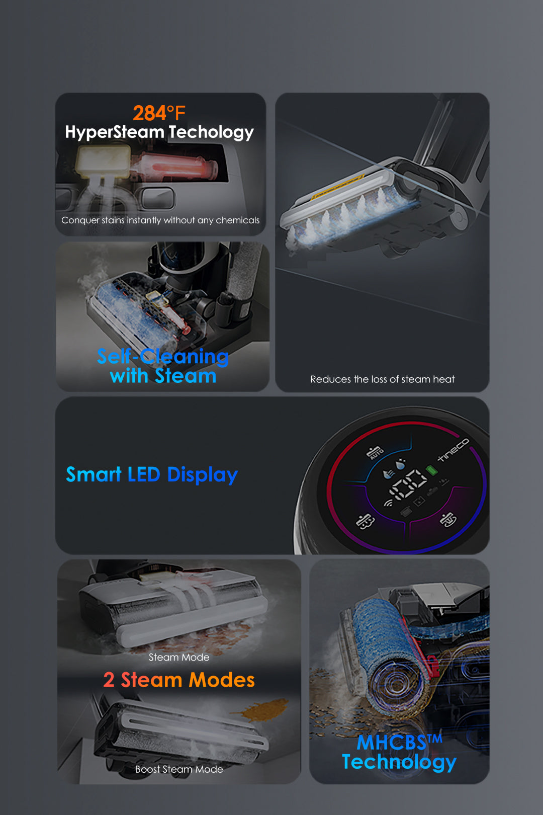 Don't settle for anything less than the power of superheated steam. With the cleaning power of high temperatures with superheated steam of the tineco steam mop, the tineco steamer can settle for everything.
